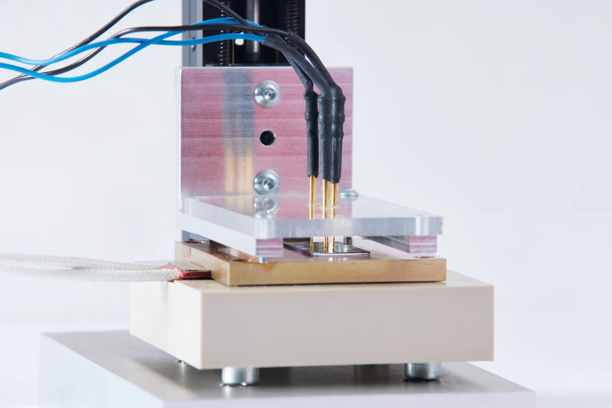 Die Messung der Wärmeleitfähigkeit dünner Schichten von elektrisch nichtleitendem Material wird mit der 3-Omega-Methode nach Cahill [1,2] durchgeführt. An einen temperaturabhängigen Widerstand wird ein sinusförmiger elektrischer Strom mit der Frequenz ω angelegt. Dies führt zu einer Spannung mit einem ω- und 3-ω-Anteil. Die Schwingungsanteile verursachen eine thermische Diffusionswelle in die Probe.