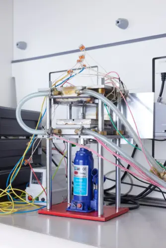 GuardedHeat Flow Method (GHFM)Der GHFM-Tester („GuardedHeat Flow Meter“) dient der thermischen und mechanischen Charakterisierung von weichen und harten Isolationsmaterialien bei hohen Temperaturen. Gemessen werden Wärmeleitfähigkeit, thermischer Widerstand, Kraft und Kompression. Das Messprinzip ist der Hot-/ColdsideTest. Die maximale Heißseitentemperatur beträgt 950°C. Das Testmaterial kann sowohl langsam als auch schlagartig erwärmt werden.